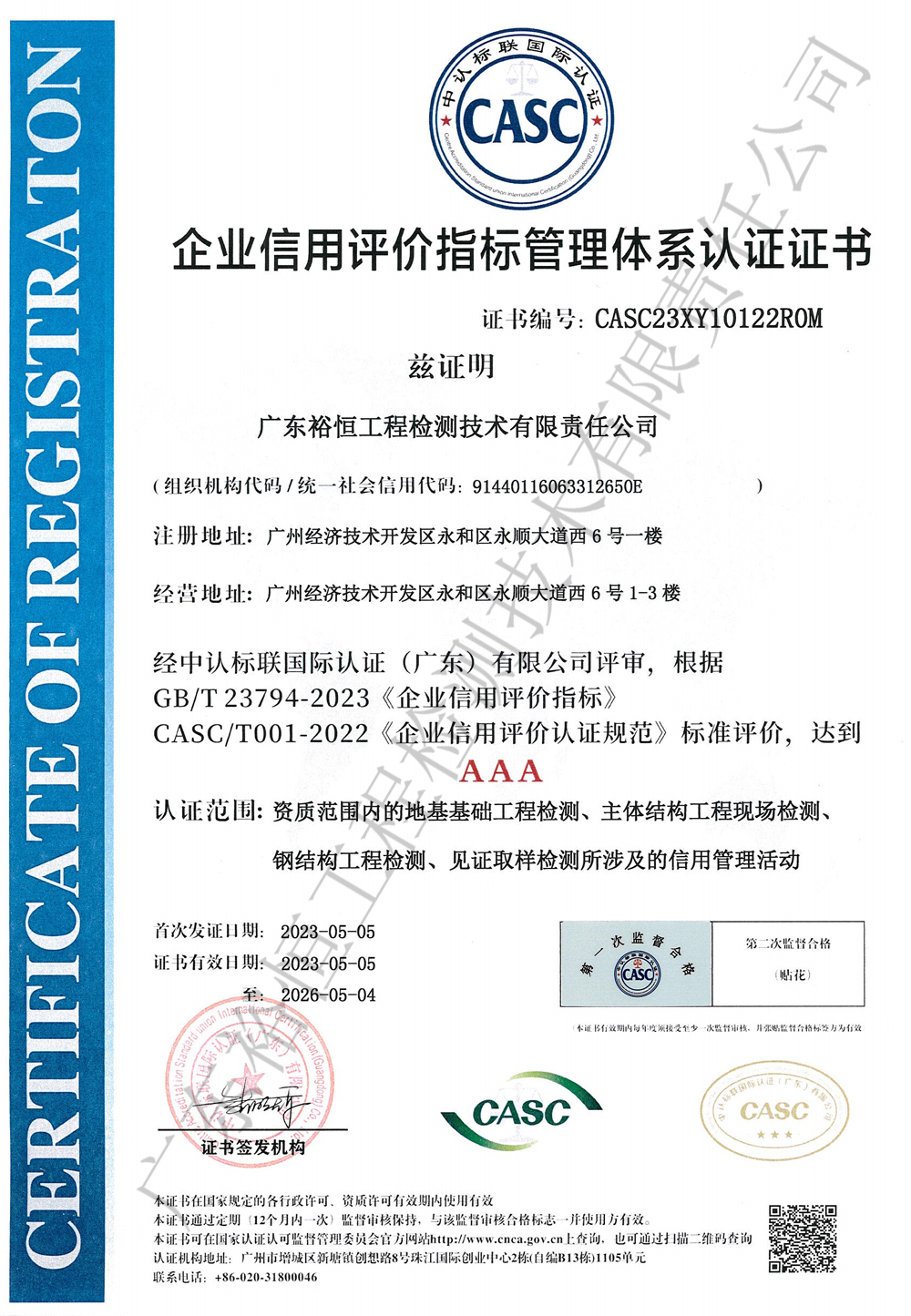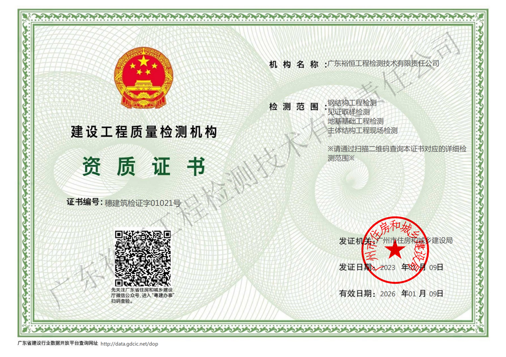 【喜報】裕恒檢測喜獲省廳頒發的工程檢測專項資質證書